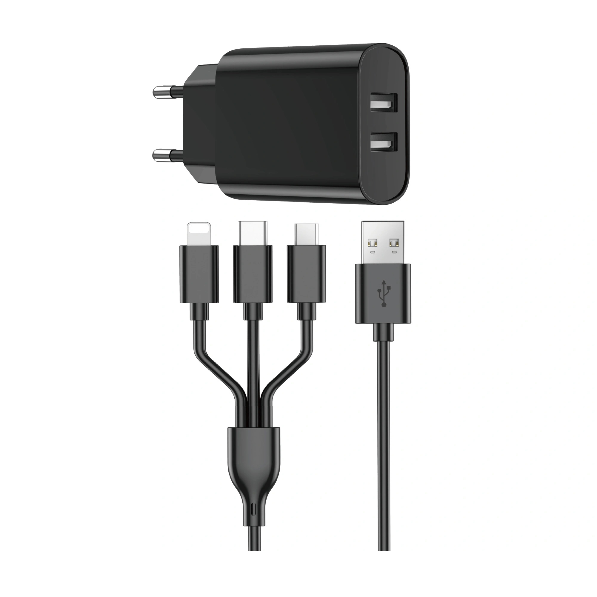 Адаптер WIWU [Wi-U003] Quick Fast Charger USB-C+USB 20W [with cable Lightning+USB-C+Micro-USB]