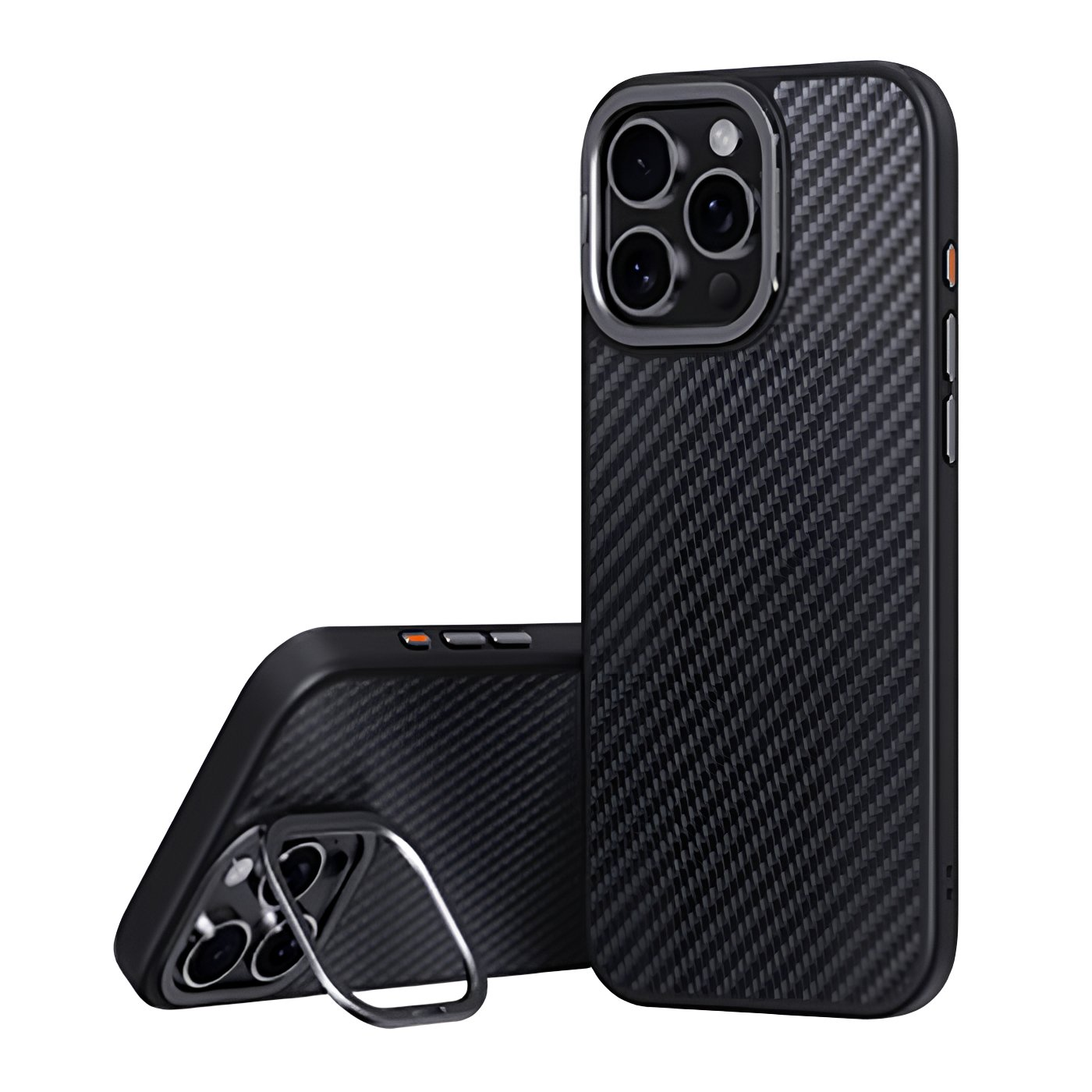 Чохли серії Kevlar Magnetic виготовлені із поєднанням TPU та карбонового волокна, що робить його надміцним із товщиною 3 мм. Елегантний чорний колір підкреслює сучасний і стильний дизайн аксесуара.Чохол має посилений захист кутів і підняті бортики навколо камери для додаткової безпеки пристрою. Поверхня стійка до подряпин і відбитків пальців. Забезпечує 360-градусний захист екрану та камери, поєднуючи елегантний вигляд із високим рівнем функціональності. Чохол оснащений підставкою, яка вбудована в рамку навколо камери. Підставка відкидається, забезпечуючи зручність використання пристрою у горизонтальному положенні та додатковий захист для камери.
