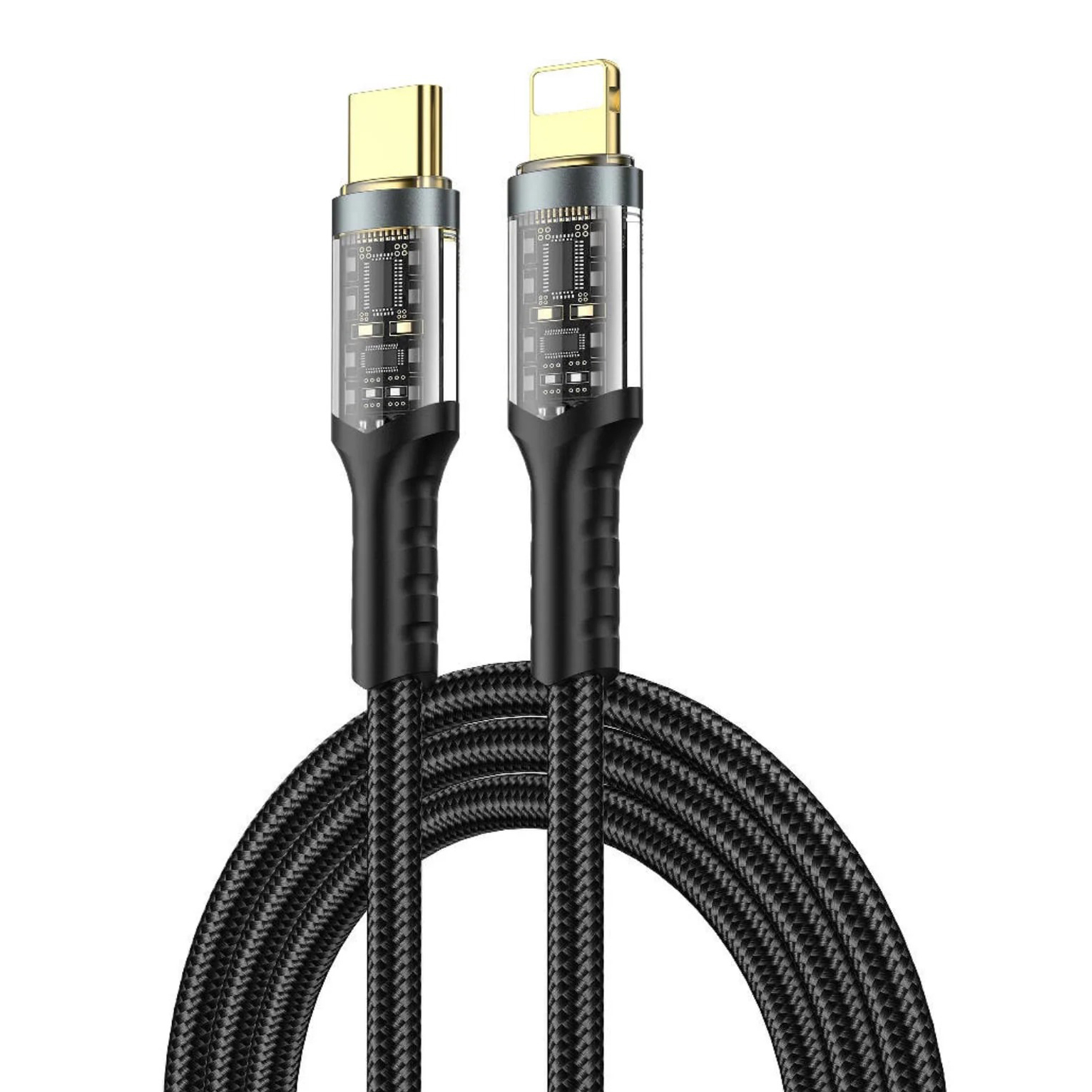 Кабель WIWU Wi-C016 30W Type-C to Lightning вирізняється сучасним і практичним дизайном, який поєднує естетику та функціональність. Виготовлений із міцного PC, нейлонової оплітки та TPU, він виконаний у стильному чорному кольорі, що виглядає універсально та елегантно. Особливістю є прозорі конектори, через які видно внутрішні плати, що додає кабелю технологічного шарму та сучасного вигляду. Довжина 1.2 м ідеально підходить для щоденного використання вдома, в офісі чи в дорозі, забезпечуючи зручність без зайвого захаращення. Плетена нейлонова оболонка підвищує зносостійкість, запобігаючи сплутуванню та пошкодженням, а прозорі роз’єми підкреслюють преміальну якість і увагу до деталей.