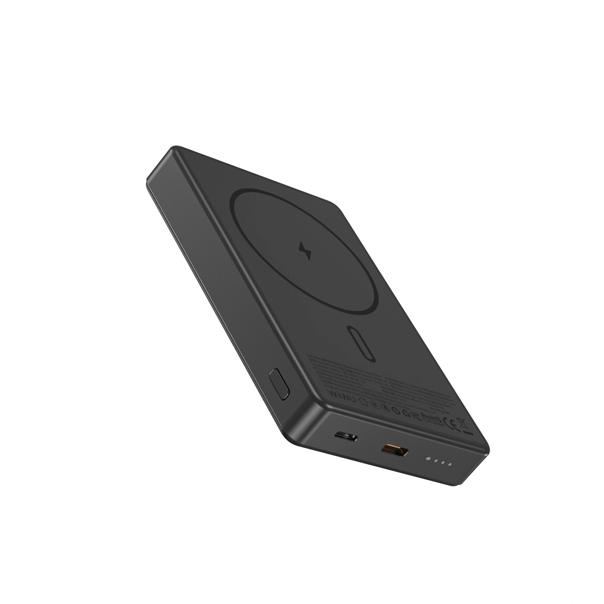 Магнітний зовнішній акумулятор WiWU Wi-P073 виконаний в ультратонкому форматі, що за відчуттями нагадує банківську картку та легко поміщається в кишені або невеликій сумці. Корпус має стриманий, сучасний вигляд і приємну текстуру, а компактність і мала вага роблять використання павербанка максимально комфортним навіть під час заряджання смартфона. Вбудована магнітна система забезпечує надійне кріплення до сумісних пристроїв, дозволяючи користуватися телефоном без зайвих рухів і ковзання.