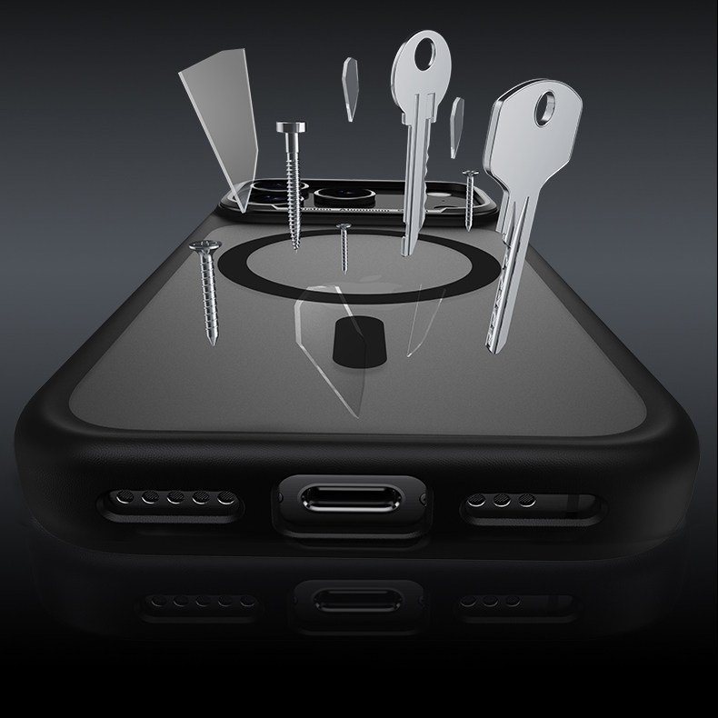Гібридна конструкція з полікарбонату, TPU та вбудованих магнітів забезпечує надійну підтримку MagSafe і сумісність з бездротовими зарядками. Посилені кути підвищують рівень захисту при випадкових падіннях. Чохол точно повторює форму смартфона, зберігаючи повну функціональність і зручність у використанні.