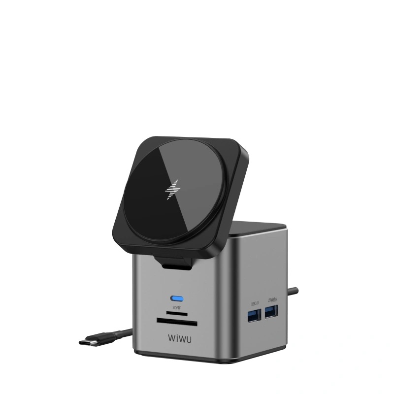 Док-станція WIWU [Wi-W025] Cube Hub Wireless Charger 9in1 USB-C to 3xUSB3.0+HDMI+RJ45+SD/MicroSD+PD 100W