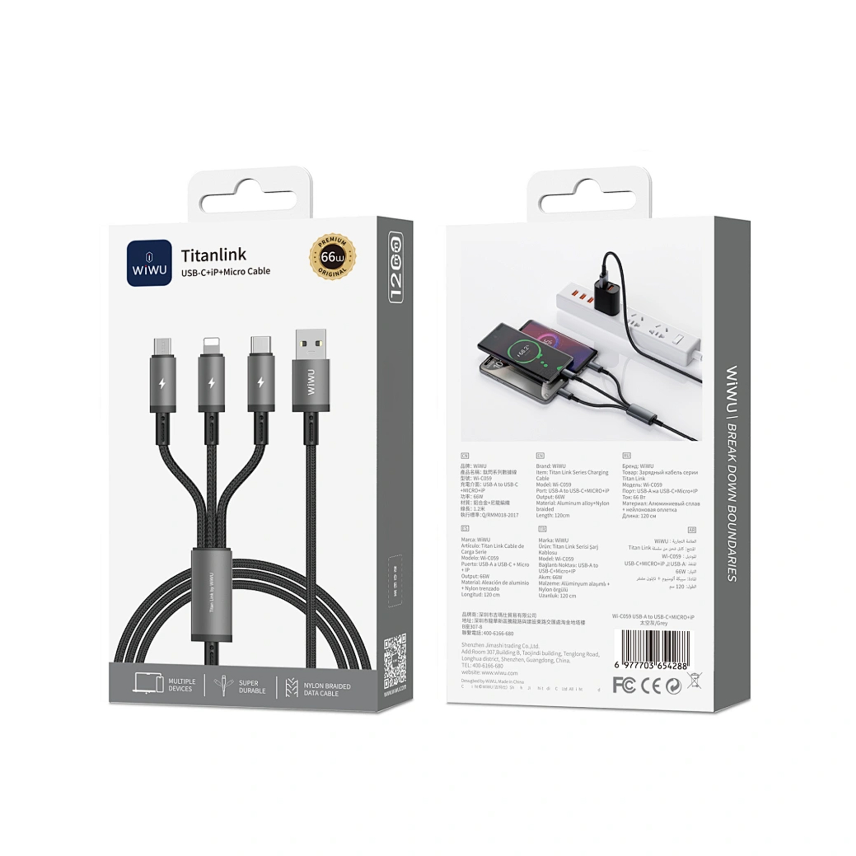 Кабель WIWU [Wi-C059] Titanlink Series USB to Lightning+USB-C+Micro-USB 66W 1.2m