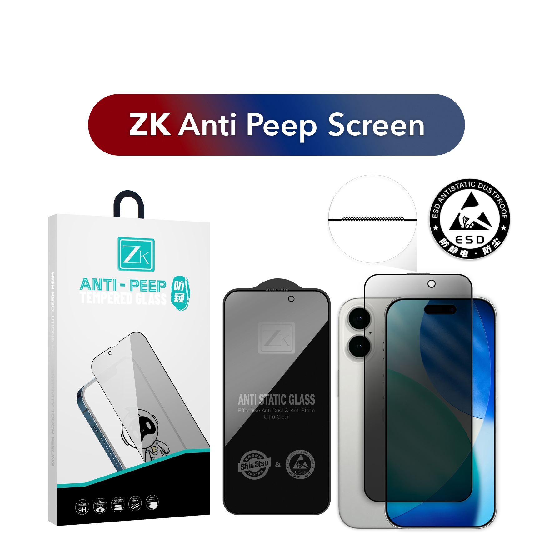 Захисне скло ZK для iPhone 16 Pro/17 2.5D Anti Peep
