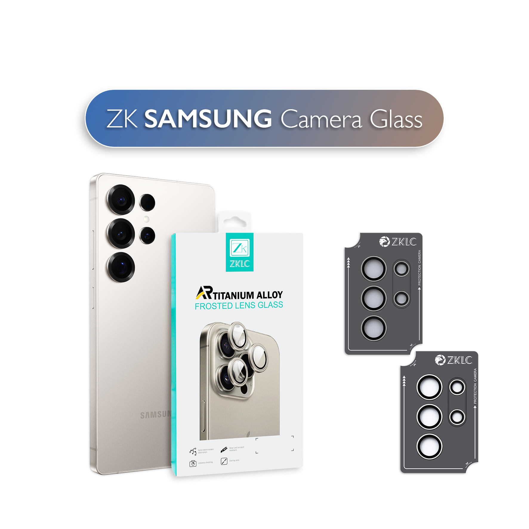 У дизайні скло ZK вирізняється елегантною чорною рамкою, яка гармонійно доповнює зовнішній вигляд Samsung. Точна підгонка забезпечує щільне прилягання до камери, не заважаючи роботі об'єктива чи використанню захисного чохла. Доступність у різних кольорах, таких як Black та Grey, дозволяє користувачам обрати варіант, що найкраще відповідає їхньому стилю та кольору пристрою. Цей аксесуар поєднує в собі функціональність та стиль, забезпечуючи захист камери без компромісів у дизайні.